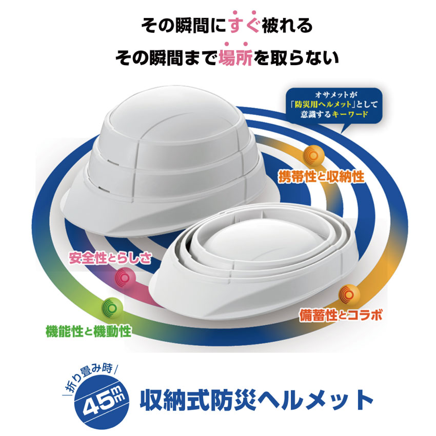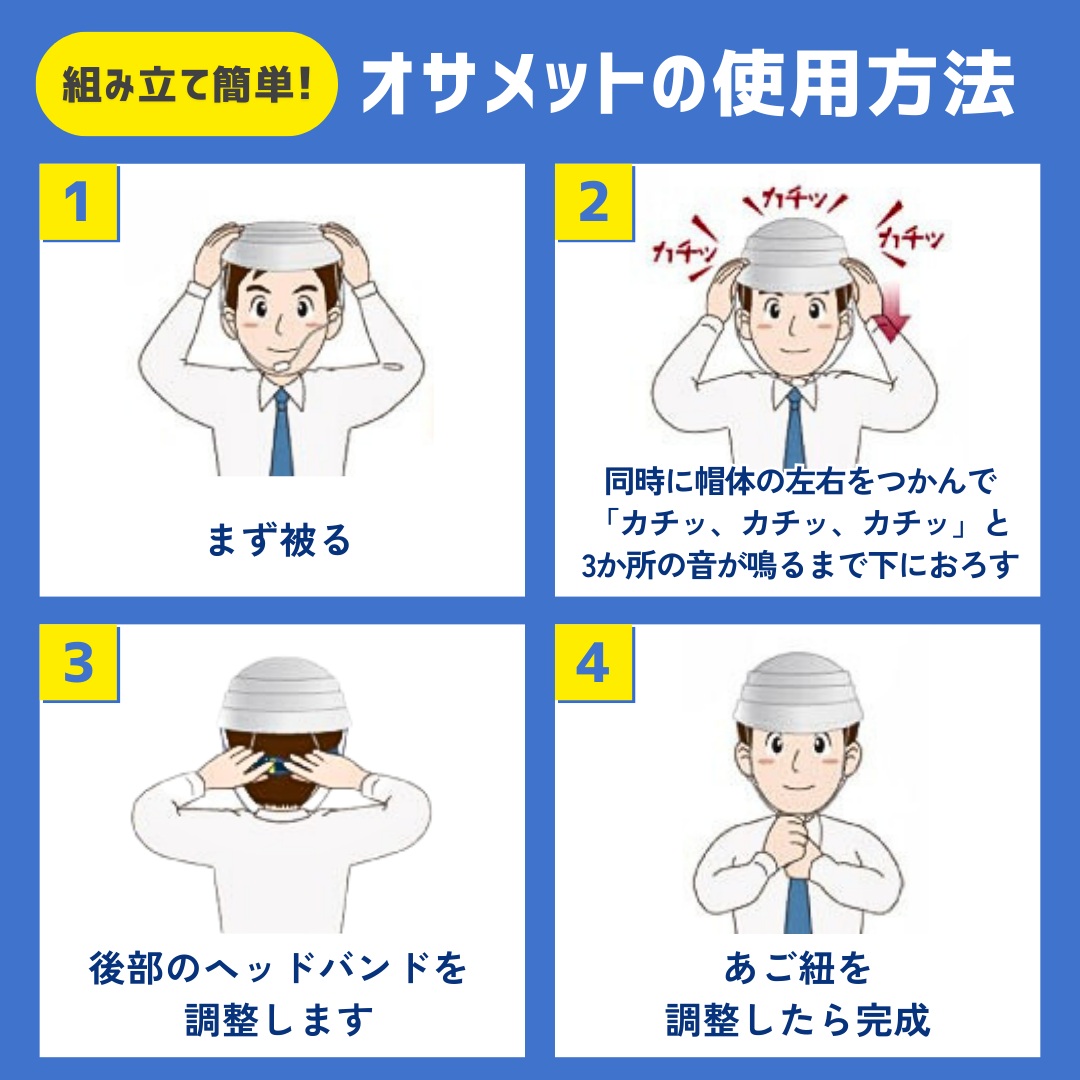※オサメットは防災用ヘルメットです。「作業用」「オートバイ・自転車用」として使用しないでください。